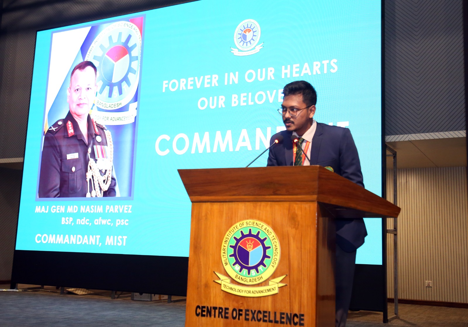 A farewell programme was arranged by the students in honour of the Respected Commandant of the Military Institute of Science and Technology (MIST), Major General Md Nasim Parvez, BSP, ndc, afwc, psc, at the Shaheed Yamin Auditorium on 2 March 2026.